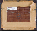 Na odwrocie, centralnie, owalny stempel firmy z materiałami malarskimi: Adrian Brugger | München | Theatineerstrasse[.]; ponadto notatki (ołówkiem) p.g.: Baron Hertling; pod pieczęcią (przeciwnie do kompozycji): N[..]by | P. PW; l.g. nalepka aukcyjna Agra-Art z 2013 roku.