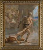 Obraz stanowi ilustrację do XVIII pieśni Odysei opisującej walkę na pięści Odyseusza z Irosem: