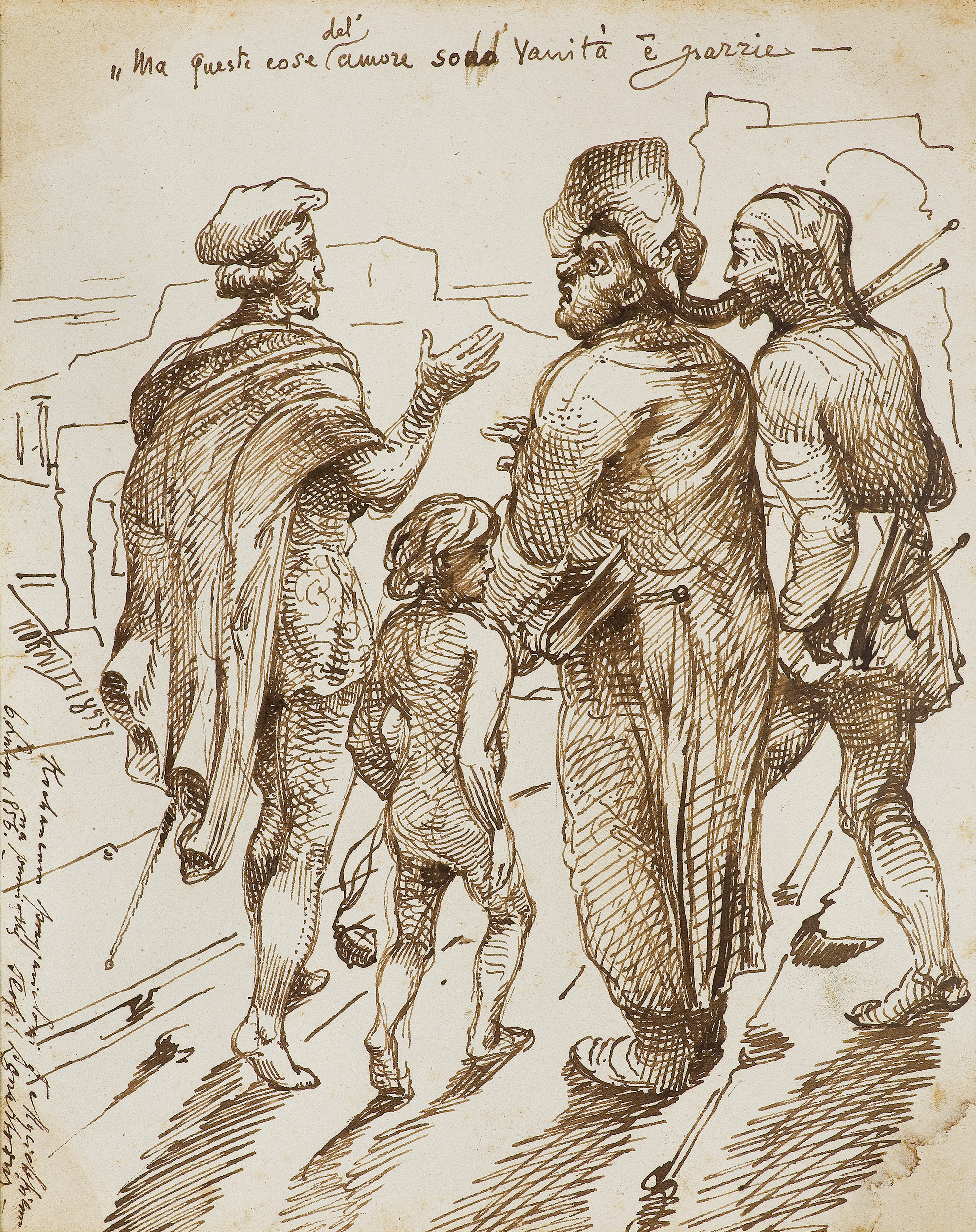 poniżej wzdłuż krawędzi dedykacja: Kochanemu przyjacielowi F. Mycielskiemu | na pamiątkę Teofil Lenartowicz | 6 lutego 1856, u góry napis: Ma queste cose del’amore sono Vanita e pazzie