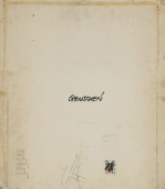 na odwr. śr. napis oł.: Plansza 12| [flamastrem:] GRUDZIEŃ | oł.: Kalendarz ścienny PSY, niżej pieczątka: W.H.Z. | Nr pozycji, poniżej informacje kolorystyczne dla wydawcy oraz naklejony znaczek pocztowy z reprodukcją bardzo podobnego, lecz nie identycznego wizerunku psa autorstwa J. Grabiańskiego.