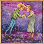 sygn. na odwr. na płótnie: Franciszek | Maśluszczak | 1983 | OLEJ | tytuł: PATRZ I PODZI-| WIAJ | 0,27 X 0,27 M. | 324., powyżej numeru i na d. krośnie stempel Galerii Canatetto w Warszawie