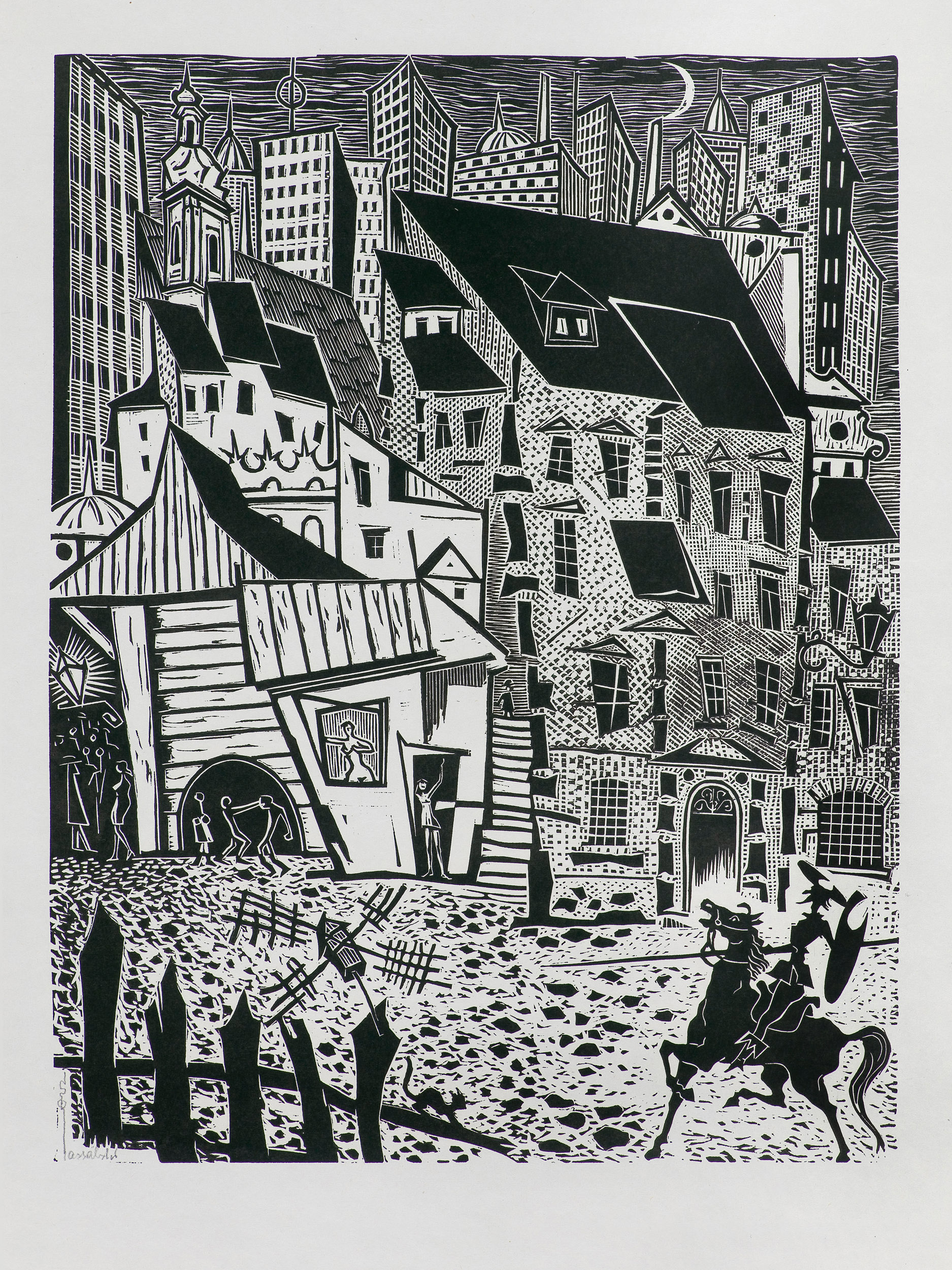 Stefan Rassalski (1910 - 1972) -malarz, grafik, historyk sztuki, publicysta. Studiował w Lublinie, dyplom uzyskał na warszawskiej ASP. Od 1932 r. uprawiał drzeworyt, początkowo pod silnym wpływem Tadeusza Kulisiewicza i sztuki ludowej. Z czasem w pracach rozwinął treści symboliczne i literackie. Jego dzieła odznaczają się oszczędnością faktury i dyscypliną kompozycji. Na początku działalności artystycznej związany z Lublinem, gdzie w latach 1928-33 kształcił się w kierowanej przez Janinę Miłosiową Wolnej Wszechnicy Malarstwa i Rysunku. Wtedy zaczął interesować się drzeworytem. Pierwsze grafiki wykonał w 1932 r., a rok później własnym kosztem wydał tekę drzeworytów "Lublin". Jeden z założycieli działającej w tym mieście grupy artystycznej Krąg. Około 1936 r. przeniósł się na stałe do Warszawy. Początkowo pracował jako reporter i dziennikarz. Zetknął się wówczas z Jerzym Hulewiczem, którego wpływ dostrzegany bywa zwłaszcza w dwóch rycinach zatytułowanych "Modlitwa", a pochodzących z lat 1942 i 1947. W czasie wojny napisał pracę poświęconą Hulewiczowi, która niestety nie doczekała się publikacji. Podczas okupacji Stefan Rassalski, pseudonim „Ster”, pracował w tajnym laboratorium fotograficznym, które mieściło się na terenie Politechniki Warszawskiej. W czasie Powstania Warszawskiego Rassalski był jednym z fotoreporterów Armii Krajowej, działającym w rejonie południowego Śródmieścia. Wykonał wtedy kilkaset zdjęć ukazujących walki powstańcze oraz płonącą Warszawę. Po wojnie był jednym z członków Biura Odbudowy Stolicy, w którym kierował pracownią fotograficzną. Na kilku tysiącach negatywów utrwalił zniszczenia wojenne oraz codzienne życie mieszkańców w doszczętnie zrujnowanej Warszawy. Jego fotografie, mające walor przede wszystkim dokumentalny, nie są pozbawione wartości artystycznej. Rassalski tworzył też fotomontaże, zestawiające wygląd znanych warszawskich budowli po zniszczeniach wojennych, z ich wcześniejszym kształtem. Na łamach Stolicy, gdzie był sekretarzem redakcji, zamieszczał liczne artykuły poświęcone urbanistyce i projektom odbudowy miasta. Pisywał także do Nowin Literackich, Warszawy i Tygodnika Kulturalnego.