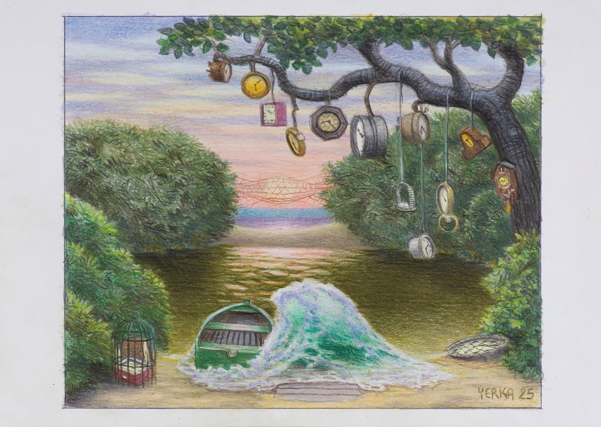sygn. p.d.: JACEK YERKA | >>ZŁODZIEJE CZASU<< | KREDKI 2025