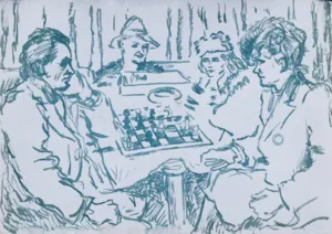 węgiel, pastel, pł. gruntowane jasnobrązową farbą