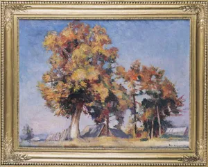 olej, papier naklejony na tekturę i na deskę