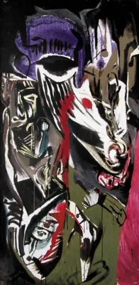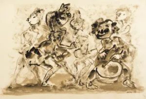 węgiel, ołówek, papier nakl. na płytę pilśniową