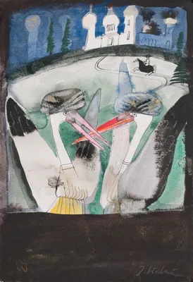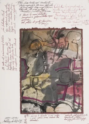 tusz, akwarela, papier nakl. na papier