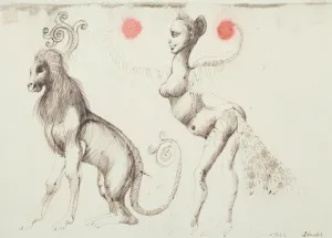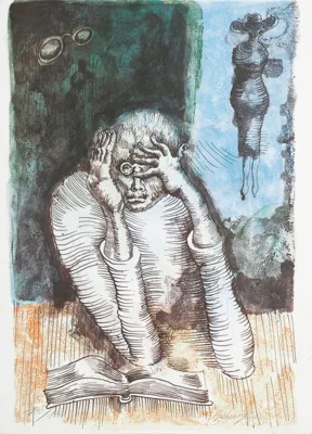 długopis, akwarela, papier kremowy z perforacją