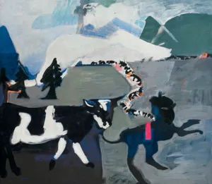 gwasz, akryl, papier naklejony na płótno