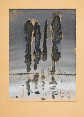 gwasz, tusz pędzel, papier