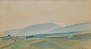 akwarela, karton naklejony na tekturę