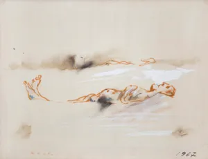 tusz, pastel, gwasz, papier naklejony na tekturę