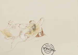 tusz (sepia) pióro, papier kremowy