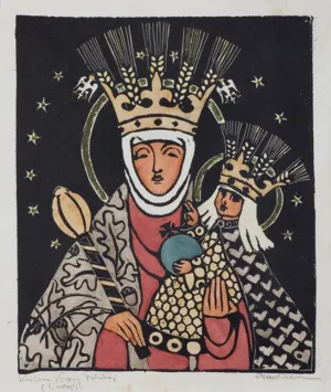 linoryt kolorowany akwarelą i złocony, papier