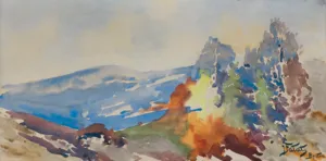 akwarela, papier naklejony na tekturę