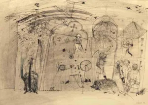 tusze b, pióro, pędzel, gwasz biały, papier