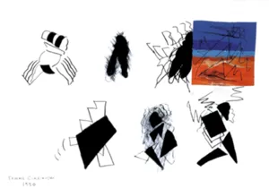olej, płyta pilśniowa, collage (metal)