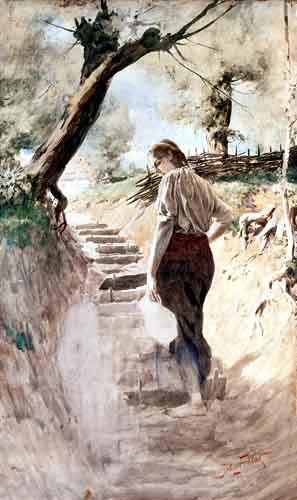 Julian Fałat (Tuligłowy [okręg lwowski] 1853 - Bystra k. Bielska 1929) - malarz i pedagog - jeden z najwybitniejszych artystów polskich okresu przełomu XIX i XX wieku, członek polskich i europejskich stowarzyszeń twórczych oraz Królewskiej Akademii Sztuk Pięknych w Berlinie, wielokrotnie odznaczany medalami na wystawach międzynarodowych. Studiował malarstwo u Władysława Łuszczkiewicza i Leona Dembowskiego w Szkole Sztuk Pięknych w Krakowie (1868-71 i 1881) i w Akademii Sztuk Pięknych w Monachium u Alexandra Strähubera i Johana Leonhardta Raaba (1877-80). Po studiach spędził kilka miesięcy w Rzymie, w 1884 był w Paryżu i w Hiszpanii, a w 1885 odbył podróż morską dookoła świata. W 1886 podczas polowania u ks. Radziwiłłów w Nieświeżu poznał późniejszego cesarza Niemiec Wilhelma II - dla którego następnie w latach 1886-95 pracował w Berlinie jako malarz nadworny. W latach 1894-96 współpracował z Wojciechem Kossakiem przy panoramie Berezyna. W 1895 został powołany na stanowisko dyrektora Szkoły Sztuk Pięknych w Krakowie, w której gruntownie zreformował system nauczania, przekształcając tę uczelnię w nowoczesną Akademię Sztuk Pięknych (r.1900). Do roku 1910 był rektorem Akademii; po przejściu na emeryturę osiadł w miejscowości Bystra k. Bielska. Znakomity akwarelista, malował także olejno. We wcześniejszym okresie tworzył w konwencji realistycznej, z czasem rozjaśnił i wzbogacił paletę, a w akwarelach wprowadzał rozlewną plamę barwną. Zasłynął jako malarz scen myśliwskich rozgrywających się najczęściej w zimowej scenerii; malował też pejzaże, wiejskie sceny rodzajowe, portrety, widoki miejskie.