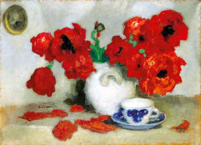 Alfons Karpiński (Rozwadów, dziś dzielnica Stalowej Woli 1875 - Kraków 1961) w latach 1891-1899 studiował w krakowskiej Szkole Sztuk Pięknych pod kierunkiem Floriana Cynka, Izydora Jabłońskiego, Władysława Łuszczkiewicza i Leona Wyczółkowskiego, a następnie kształcił się jeszcze u Antona Ažbégo w Monachium (1903), u Kazimierza Pochwalskiego w Wiedniu, a od 1907 także w Paryżu. Podróżował do Włoch i Londynu. Stale mieszkał w Krakowie; związany z tamtejszym środowiskiem skupionym wokół „Zielonego Balonika” projektował dekoracje do przedstawień kabaretu. Należał do Tow. Artystów Polskich „Sztuka”, grupy „Zero”, był członkiem wiedeńskiego stowarzyszenia „Secesja” i krakowskiego TPSP. Uczestniczył w wielu wystawach w kraju i za granicą. W czasie I wojny światowej służył w armii austriackiej. Na bogatą twórczość artysty składają się wczesne sceny rodzajowe z podkrakowskiej wsi, pejzaże i portrety, wśród nich zwłaszcza portrety kobiece, które przyniosły mu szczególną popularność. Z czasem głównym – obok portretu – tematem jego obrazów stały się martwe natury z kwiatami, dekoracyjne kompozycje o stonowanej gamie barwnej. Artysta zajmował się także grafiką i ilustratorstwem.