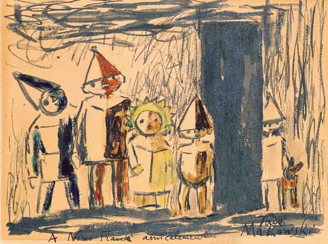 Tadeusz Makowski (Oświęcim 1882 - Paryż 1932) - malarz, grafik; w latach 1903-1908 studiował malarstwo u Józefa Mehoffera i Jana Stanisławskiego w krakowskiej Akademii Sztuk Pięknych. W czasie studiów podróżował do Wenecji, po ich ukończeniu wyjechał do Paryża i tam pozostał na stałe. W czasie I wojny światowej przebywał w Bretanii, przyjaźniąc się z Władysławem Ślewińskim. W 1916 wrócił do Paryża, skąd wyjeżdżał do Owernii, Holandii i Belgii. W początkach twórczości inspirował się malarstwem Pierra Puvis de Chavannes’a. W latach 1912-1915 w jego obrazach widoczna jest fascynacja kubizmem, a później także inspiracje dawnym malarstwem holenderskim i polską sztuką ludową. Z czasem artysta coraz bardziej upraszczał formę, dochodząc do stworzenia „własnego systemu znaków plastycznych“. Szczególnie często malował dzieci, w okresie późniejszym także starych ludzi, a zawsze chętnie kwiaty i pejzaże. Wiele wystawiał we Francji, natomiast w kraju nie był specjalnie znany. Jedyna większa wystawa jego prac odbyła się w roku 1936 w warszawskim Instytucie Propagandy Sztuki. Dziś jest uznany za jednego z najciekawszych malarzy polskich okresu dwudziestolecia międzywojennego. Jego twórczość, wnikliwie opracowana i omówiona w opracowaniach prof. W. Jaworskiej, prezentowana była w 1960 na wystawie monograficznej w Muzeum Narodowym w Warszawie, na wystawie w 1990/1991 prezentowanej w Bochum i Muzeum Narodowym w Warszawie i na ostatniej wystawie w Muzeum Śląskim w Katowicach i ponownie w Muzeum w Warszawie.