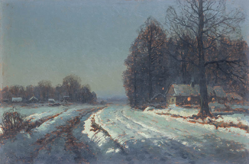 Wiktor Korecki (Kamieniec Podolski 1890 - Komorów k. Warszawy 1980) - malarz pejzażysta - gimnazjum ukończył w Kijowie, tam też studiował w Szkole Rysunkowej Aleksandra Muraszki. Po studiach wrócił do Kamieńca Podolskiego, skąd w roku 1921 wyjechał do Warszawy. Tu miał pracownię na rogu ulic Tamki i Cichej. Niestety zgromadzone tam obrazy spłonęły w czasie powstania 1944 roku. Po powstaniu artysta przebywał w obozie w Pruszkowie skąd trafił do obozu pracy w Lipsku. Do kraju powrócił w roku 1946 i zamieszkał w Komorowie pod Warszawą, a później w Milanówku. Jego nastrojowe krajobrazy emanujące spokojem i pogodą cieszyły się zawsze dużą popularnością. Korecki najczęściej malował pejzaże zimowe z motywem leśnej drogi i strumienia wijącego się wśród śniegów, a obok nich także wiosenne, letnie czy jesienne widoki z Mazowsza.