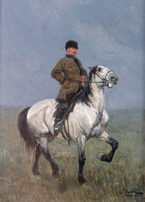 Jan Rosen (Warszawa 1854 - Warszawa 1936), popularny malarz-batalista, pierwsze lekcje rysunku pobierał już w dzieciństwie - u Henryka Redlicha w Dreźnie i Franciszka Kostrzewskiego w Warszawie. Później, w latach 1872-1874 studiował w Monachium - w Akademii pod kierunkiem Alexandra Strähubera i rzeźbiarza Ferdinanda Bartha oraz w prywatnej pracowni Józefa Brandta, a w latach 1875-1879 w École des Beaux-Arts w Paryżu u Isidora Pilsa i Jean-Léona Gerome’a. Długo przebywał poza krajem, wiele podróżował; mieszkał w Monachium, Paryżu, Lozannie. W roku 1891 został nadwornym malarzem dworu petersburskiego. Do kraju wrócił w roku 1921; początkowo mieszkał na wsi, później w Warszawie i we Lwowie. Wyjeżdżał także do Włoch. Malował przede wszystkim obrazy o tematyce wojskowej, sceny batalistyczne z czasów napoleońskich i powstania listopadowego oraz obrazy rodzajowe z ulubionym motywem jeźdźców i koni.