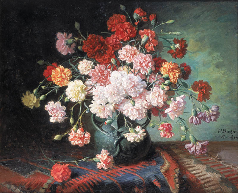Niemiecki malarz Hans Buchner początkowo studiował w Akademii Sztuk Pięknych w Stuttgarcie pod kierunkiem J.Grünewalda i C.von Häberlina, następnie w Akademii monachijskiej u A.Wagnera. Od 1880 stale mieszkał w Monachium. Uczestniczył w licznych wystawach. m.in. w Glaspalast. Malował przede wszystkim motywy kwiatowe i sceny rodzajowe.