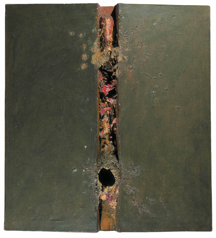Aleksander Kobzdej (Olesko na Ukrainie 12 IX 1920 - Warszawa 25 IX 1972) od wczesnego dzieciństwa mieszkał we Lwowie, gdzie w 1939 zdał maturę. Równolegle z nauką w szkole średniej uczył się prywatnie rysunku i rzeźby. Jesienią 1939 rozpoczął studia architektoniczne na Politechnice Lwowskiej i jednocześnie zaczął malować pod okiem Władysława Lama. Pod obiema okupacjami, sowiecką i hitlerowską, podejmował prace zarobkowe, kontynuując w miarę możności studia. W 1944 został wywieziony na roboty przymusowe do Wiednia, skąd uciekł do Jugosławii. W 1945 wrócił do kraju. Krótko studiował w ASP w Krakowie u Eugeniusza Eibischa, by już pod koniec 1945 objąć stanowisko asystenta swego dawnego nauczyciela, Władysława Lama, na Wydziale Architektury Politechniki Gdańskiej. Pracując ukończył politechnikę z dyplomem inżyniera i od 1947 zaczął uczyć w PWSSP w Sopocie. Pracował tam do 1951, kiedy to przeniósł się do ASP w Warszawie, gdzie nauczał aż do śmierci. W latach 40. ulegał w swych próbach malarskich wpływom koloryzmu, kierunku triumfującego zarówno w Akademii krakowskiej, gdzie zaczynał studia, jak i w „szkole sopockiej“, w której sam uczył. Koloryzm Kobzdeja był jednakże poddany dyscyplinie skupionej, syntetycznej formy o rodowodzie sięgającym kubizmu i ekspresjonizmu. W pierwszej połowie lat 50. Kobzdej należał do koryfeuszy socrealizmu. Na ile artysta nie unikał, nawet w tym czasie, ironicznej refleksji, świadczy dyptyk złożony z obrazów Podaj cegłę i Ceglarki, w którym skonfrontował postulatywną i rzeczywistą stronę trudu codziennej pracy. W latach 50. rozwinął też swój talent rysownika, tworząc cykle reportażowych notatek z podróży do Chin i Wietnamu. Od 1956 radykalnie zmienił styl, doświadczając odtąd rozmaitych odmian informelu i malarstwa materii. Eksperymentując z fakturą i przestrzenią doszedł do swego głównego motywu, m stał się wielki cykl „Szczelin“, tworzonych od 1966. Ich syntezą stały się obiekty malarskie zwane „Hors cadre“.