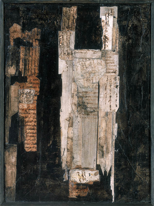 Teresa Rudowicz (Toruń 16 III 1928 - Kraków 1994) studiowała w latach 1948-50 w PWSSP w Gdańsku (z siedzibą w Sopocie), następnie na Wydziale Malarstwa ASP w Krakowie, który ukończyła w 1954, uzyskując dyplom w pracowni Czesława Rzepińskiego. W listopadzie 1956 była w gronie współzałożycieli Stowarzyszenia Artystycznego Grupa Krakowska. Brała udział w większości wystaw Grupy Krakowskiej w kraju i za granicą. W latach 50. malowała i tworzyła litograficzne kompozycje w duchu abstrakcji informel. Od początku lat 60. powstawały najbardziej dla niej charakterystyczne collages, porównywane niekiedy z równoległymi tendencjami malarstwa materii i assemblages. Artystka budowała swe prace z wyraźnym estetycznym upodobaniem dla autentyczności używanych elementów (narażając się nawet na zarzuty części krytyki, że „psuje“ starodruki, oryginalne ryciny czy elementy zdobnicze). Jej prace, częściowo dzięki tej autentyczności, częściowo wskutek zabiegów malarskich, odznaczają się szlachetną, ciepłą patyną. Tworzyła collages do końca życia, z wyłomem we wczesnych latach 80., kiedy to pod wpływem atmosfery stanu wojennego malowała kompozycje religijne („Ukrzyżowania“), prezentowane w obiegu kultury niezależnej.z równoległymi tendencjami malarstwa materii i assemblages. Artystka budowała swe prace z wyraźnym estetycznym upodobaniem dla autentyczności używanych elementów (narażając się nawet na zarzuty części krytyki, że „psuje” starodruki, oryginalne ryciny czy elementy zdobnicze). Jej prace, częściowo dzięki tej autentyczności, częściowo wskutek zabiegów malarskich, odznaczają się szlachetną, ciepłą patyną.