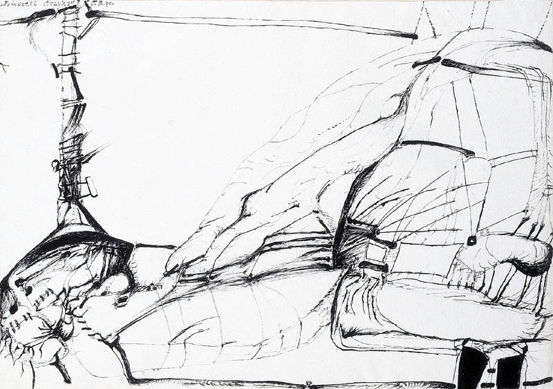 tusz pióro, pędzel, papier