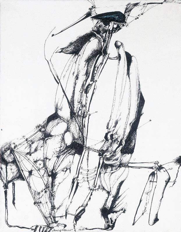 Tadeusz Brzozowski (Lwów 1918 - Rzym 1987) - od 1936 studiował malarstwo w Akademii Sztuk Pięknych w Krakowie, w latach 1940-1942 kontynuując naukę w Kunstgewerbeschule, powstałej w miejsce Akademii. W czasie okupacji związany był z Teatrem Podziemnym Tadeusza Kantora - grał w Balladynie (1943) i główną rolę w Powrocie Odysa (1944). W tym okresie zajmował się też konserwacją dzieł sztuki, co okazało się owocne dla jego własnej techniki malarskiej w przyszłości. W 1945 ostatecznie ukończył studia w krakowskiej ASP. Do 1948 wystawiał z Grupą Młodych Plastyków, uczestnicząc w najważniejszych wystawach młodego ruchu artystycznego, aż do narzucenia przez władze socrealizmu jako obowiązującego stylu obrazowania. W latach 1950-1955 nie uczestniczył w oficjalnym życiu artystycznym, zajmując się w tym czasie malowaniem polichromii kościelnych, konserwacją i nauczaniem rysunku na Wydziale Architektury Politechniki Krakowskiej (do 1954). W 1954 przeniósł się do Zakopanego, gdzie podjął pracę pedagogiczną w Szkole Kenara. Pracował w niej do 1969, w latach 1959-1961 jako dyrektor w Zakopanem mieszkał do końca życia. W tym okresie, w toku samodzielnych prób i doświadczeń stał się wirtuozem techniki malarskiej. Kolor, faktura, gra laserunków i walorów, cała „alchemia“ jaką stosował w swoich obrazach złożyły się na niepowtarzalne zjawisko malarstwa abstrakcyjnego, które zdolne było „opowiadać“ samą swą formą. W 1955 powrócił do udziału w wystawach, uczestnicząc w licznych pokazach w Polsce i za granicą, organizując też wiele wystaw indywidualnych. W 1957 wszedł w skład reaktywowanej Grupy Krakowskiej. Od 1958 współorganizował „Salony Marcowe“ w Zakopanem. W 1959 w Paryżu związał się z międzynarodowym ruchem „Phases“. W latach 1962-1979 był pedagogiem w Państwowej Wyższej Szkole Sztuk Plastycznych w Poznaniu (od 1977 profesorem), a w latach 1979-1981 profesorem ASP w Krakowie. Otrzymał wiele nagród i odznaczeń państwowych oraz m. in. nagrodę Fundacji im. Alfreda Jurzykowskiego (1983). Wśród retrospektyw artysty za jego życia wymienić należy wystawę w Muzeum Narodowym w Poznaniu (1974) i wystawę rysunków w Muzeum Okręgowym w Radomiu (1986). Wielka wystawa pośmiertna eksponowana była w Muzum Narodowym w Warszawie, a następnie w muzeach w Zakopanem, Wrocławiu i Krakowie w latach 1997-1998. Towarzyszył jej katalog oeuvre artysty w dziedzinie malarstwa i rysunku: Tadeusz Brzozowski 1918-1987, pod red. Anny Żakiewicz, Muzeum Narodowe, Warszawa 1997.