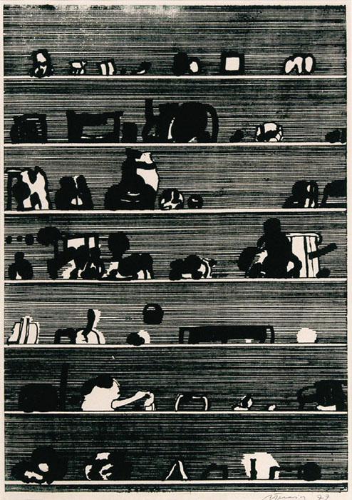 Jan Tarasin (Kalisz 11 IX 1926 - Warszawa 8 VIII 2009) studiował malarstwo w ASP w Krakowie pod kierunkiem prof. Zbigniewa Pronaszki (1946-1951). Jeszcze jako student zadebiutował na I Wystawie Sztuki Nowoczesnej w Krakowie w 1948/49. W połowie lat 50. stworzył cykle litografii: „Nowa Huta i jej mieszkańcy“, 1954, „Dom“, 1955). W pierwszym przeciwstawił się oficjalnemu optymizmowi, w drugim, operując symboliką martwej natury, zawarł treści egzystencjalne i odnoszące do niedawnego dramatu wojny. Po 1956 zaczął malować obrazy niefiguratywne. Układy wyodrębnionych elementów (określanych jako „przedmioty“) umieszczane były przez artystę na płaszczyźnie (cykl „Wnętrze“, 1957) ), lub w aluzyjnej przestrzeni (cykle „Uczta“, 1957, „Brzeg“, 1962-1964, „Przedmioty policzone“, od 1968, „Antykwariat“, 1968). Zasada ta utrzymuje się w jego malarstwie w następnych latach, różnice między okresami twórczości dotyczą sposobu opracowania „przedmiotów“ i ich usytuowania w przestrzeni obrazu lub wobec tła. Od lat 70. „przedmioty“ zmieniają się w graficzne, zwykle czarne znaki na jasnych tłach (cykl „Kolekcja“, od 1971). Tła z kolei bywają iluzyjnie przestrzenne, zróżnicowane walorowo, miękkie. W latach 90. artysta wrócił do kolorystycznego, bardziej malarskiego rozwiązywania zarówno znaków, jak i teł, często ciemnych lub przenikających się z „przedmiotami“ (cykl „Wylęgarnia przedmiotów“, 1992). Tarasin od 1962 jest członkiem „Grupy Krakowskiej“. W 1963-67 uczył na Wydziale Architektury Wnętrz krakowskiej ASP. W 1967 przeniósł się do Warszawy, w 1974 podjął pracę pedagogiczną na Wydziale Malarstwa ASP w Warszawie. W 1987-90 był rektorem tej uczelni. W 1976 otrzymał Nagrodę Krytyki Artystycznej im. Cypriana Kamila Norwida, w 1984 Nagrodę im. Jana Cybisa.; Nagroda na MB Sztuki w San Marino 1965. Równolegle z malarstwem zajmował się rysunkiem i grafiką - do lat 60. litografią, od 1974 serigrafią. W 1974-1981 wydał 8 autorskich „Zeszytów“ z serigrafiami i własnymi tekstami. W 1995 w Galerii Zachęta odbyła się wystawa artysty, której towarzyszył monograficzny katalog.