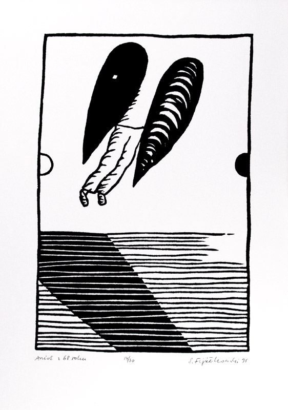 Stanisław Fijałkowski (Zdołbunow na Wołyniu 1922 - Łódź 2020) w latach 1944-1945 przebywał na robotach przymusowych w Królewcu. W latach 1946- 1951 studiował w Państwowej Wyższej Szkole Sztuk Plastycznych w Łodzi pod kierunkiem Władysława Strzemińskiego, Stefana Wegnera i Ludwika Tyrowicza, u którego uzyskał dyplom. W latach 1947-1993 był pedagogiem w macierzystej uczelni, od 1983 profesorem. Pełnił funkcje prorektora i dziekana Wydziału Grafiki. Wykładał też za granicą: w Mons (1978, 1982), Giessen (1989-1990), Marburgu (1990). Jest wiceprezydentem Międzynarodowego Stowarzyszenia Drzeworytników XYLON w Szwajcarii i przewodniczącym Polskiej Sekcji tej organizacji. Należy do zagranicznych Akademii nauk i sztuk w Salzburgu i Brukseli. Jest laureatem Nagrody Krytyki Artystycznej im. Cypriana Norwida 1971, Nagrody im. Jana Cybisa 1990 i wielu innych wyróżnień. Jako pierwszy w Polsce przetłumaczył teksty Wasyla Kandinskiego („Punkt i linia a płaszczyzna” i „O duchowości w sztuce”), oba wydane drukiem, oraz Kazimierza Malewicza „Świat bezprzedmiotowy”. Malarstwo Fijałkowskiego bazuje na skromnym zasobie abstrakcyjnych znaków i ograniczonej gamie barwnej. Kompozycje, w większości sugerujące ujęcia pejzażowe czy szerzej – przestrzenne, budowane są jakby pojedynczymi dotknięciami pędzla. Każdy szczegół nabiera ważności, śledzi się każdy niuans barwy czy faktury. Charakterystyczne kształty i motywy powtarzają się w różnych konfiguracjach w pracach artysty niczym wyrazy, z których układa za każdym razem inną opowieść. Obrazy noszą zazwyczaj poetyckie tytuły, często wpadające w tony groteskowe czy surealistyczne. Cechy te składają się na niezwykłe, intrygujące, autonomiczne zjawisko artystyczne. Malarstwu Fijałkowskiego od początku lat 60. towarzyszy czarno-biała grafika, głównie linoryt i drzeworyt, sporadycznie litografia.