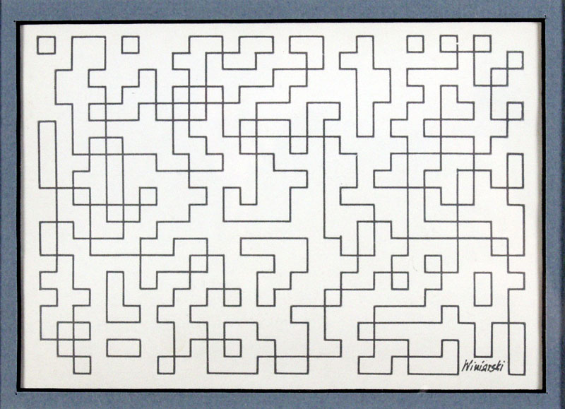 Ryszard Winiarski (Lwów 1936 - Warszawa 2006) ukończył w 1959 Politechnikę Warszawską i podjął studia malarskie w ASP w Warszawie (1960-1966). Pod koniec studiów, w 1965 sformułował własny program artystyczny i zrealizował pierwsze prace z serii pt. „Próby wizualnej prezentacji rozkładów statystycznych“. Otrzymał za nie I nagrodę na Sympozjum Artystów i Naukowców w Puławach w 1966. Jako stałe moduły prac przyjął kwadraty w kolorach czerni i bieli, których kolejnością i rozmieszczeniem rządzi przypadek - rzut kostką do gry, losowanie lub wybór liczb przypadkowych. W 1970 wprowadził do swych prac trzeci wymiar w formie obrazów przestrzennych lub jako iluzję przestrzeni uzyskaną przez wykreślanie perspektywy linearnej. W 1971 powstały pierwsze obrazy z wmontowanymi lustrami. Od 1972 artysta aranżował też „gry“ z udziałem widzów, którzy stosując jego środki i metodę wypełniali płaszczyznę czy pomieszczenie własną „wystawą“. Od ok. 1983 Winiarski włączył do swych prac elementy znaczeniowe, symboliczne i odwołujące się do emocji, jak kształt krzyża, naturalne materiały i zabiegi na nich, np. gięcie (instalacje: Geometria w stanie napięcia, 1984, Czarny kwadrat czyli fruwająca geometria, 1984, Hommage dla Henryka Stażewskiego, 1989). Równolegle artysta od 1960 uprawiał scenografię teatralną, będąc autorem kilkudziesięciu realizacji w tej dziedzinie w teatrach całej Polski. Uczestniczył w wielkiej liczbie wystaw w Polsce i za granicą, w tym: Biennale w Sao Paulo 1969, I i II Biennale des Konstruktivismus, Norymberga 1969 i 1971, Konstrukcja w procesie, Łódź 1981 i Monachium 1985. Zmarł 4 grudnia 2006 w Warszawie.