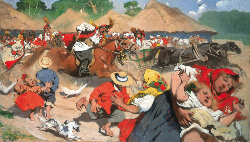 Włodzimierz Przerwa-Tetmajer (Harklowa koło Ludźmierza na Podhalu 1862 - Kraków 1923), przyrodni brat poety Kazimierza, naukę malarstwa rozpoczął wcześnie; już od 1875 uczęszczał na zajęcia do Szkoły Sztuk Pięknych w Krakowie, gdzie następnie (z przerwami) kształcił się do 1895 - początkowo u Franciszka Cynka, Leopolda Loefflera i Władysława Łuszczkiewicza, a po 1889 u Jana Matejki. Równolegle studiował filologię klasyczną na Uniwersytecie Jagiellońskim. W 1882 uczył się jeszcze w Akademii Wiedeńskiej, a w latach 1886-89 w Akademii Monachijskiej u Aleksandra Wagnera. Studia uzupełniał w paryskiej Académie Colarossi. Stypendium cesarskie umożliwiło mu wyjazd do Rzymu. Po powrocie mieszkał w Krakowie. W 1890 ożenił się z Anną Mikołajczykówną, córką gospodarza z podkrakowskiej wsi Bronowice, gdzie sam często przebywał, a w 1895 zamieszkał na stałe. W 1901 założył i następnie przez kilka lat prowadził szkołę malarstwa dla kobiet. Od 1899 był członkiem Towarzystwa Artystów Polskich „Sztuka”; w 1901 jednym z założycieli Towarzystwa „Polska Sztuka Stosowana”; w 1908 współzałożycielem grupy „Zero”. Był wybitnym przedstawicielem nurtu „ludowości”, malarzem obyczajów, pracy i krajobrazu podkrakowskiej wsi. We wcześniejszym okresie tworzył w duchu akademickiego, monachijskiego realizmu. Później wykształcił własny, oryginalny styl - kompozycja jego obrazów była swobodna, malował szerokimi pociągnięciami pędzla, używał jasnych, żywych barw. W latach 1892-1894 współpracował z Wojciechem Kossakiem i Janem Styką przy Panoramie Racławickiej. Projektował witraże, zajmował się ilustratorstwem i malarstwem ściennym, m.in. w 1902 wykonał polichromię kaplicy królowej Zofii w Katedrze na Wawelu. Artysta był pierwowzorem postaci Gospodarza w dramacie S. Wyspiańskiego Wesele.
