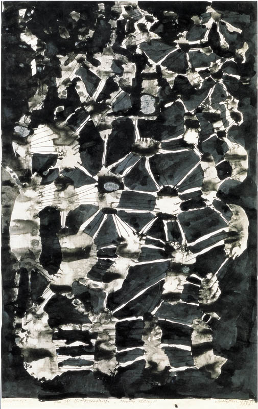 Jan Lebenstein (Brześć Litewski 1930 - Kraków 1999) w latach 1948-1954 studiował malarstwo w ASP w Warszawie pod kierunkiem prof. Eugeniusza Eibischa i Artura Nachta-Samborskiego. W 1955 wziął udział w wystawie w warszawskim Arsenale. Zaprzyjaźniony w czasie studiów z Mironem Białoszewskim, swą pierwszą wystawę indywidualną pokazał w 1956 w Teatrze na Tarczyńskiej. W 1959 zdobył Grand Prix de la Ville de Paris na I Biennale Młodych w Paryżu i w tym roku przeniósł się na stałe do Paryża. Po seriach "figur kreślonych" (na papierze milimetrowym) i "figur hieratycznych" z lat 1955-1958 maluje cykl "figur osiowych" (1958-1962), które wystawia w Paryżu i USA. Równolegle w 1960 zaczyna rysowane "karnety", rodzaj dziennika, który w przyszłości dostarczy motywów wykorzystanych w obrazach. W latach 1964-1965 maluje "Bestiarium", cykl fakturowych, archaizowanych stworów przypominających prehistoryczne wykopaliska. Bezpośrednio po nich wprowadza do swych obrazów postaci ludzkie i fantastyczne, odgrywające sceny ni to mitologiczne, ni to ze snu, często przesycone erotyką. W 1970 projektuje witraże dla Centre du Dialogue w Paryżu. W W 1971 otrzymuje obywatelstwo francuskie 1974 powstają gwasze inspirowane Folwarkiem zwierzęcym George'a Orwella. W latach 1976-1989 tworzy wyłącznie w technice gwaszu i pastelu, podejmując tematykę mitologiczną i zaczerpniętą z Biblii: cykle ilustracji do Księgi Hioba (wyd. 1979) i do Apokalipsy (wyd. 1986) w nowych przekładach Czesława Miłosza. W 1989 powraca do malarstwa olejnego (cykl "Pergamon"). Artysta otrzymał m. in. nagrodę Fundacji im. Alfreda Jurzykowskiego w 1976, Nagrodę Muzeum Archidiecezji Warszawskiej w 1985, Nagrodę im. Jana Cybisa w 1987.