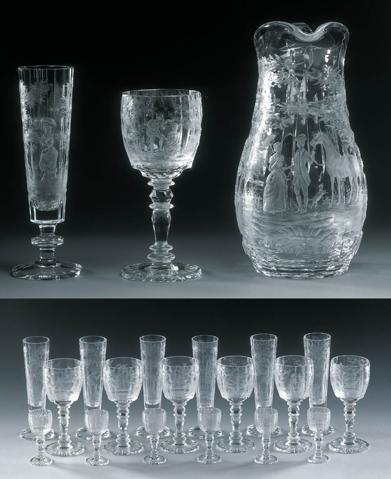 Komplet 12 kieliszków i dzban, koniec XIX w.