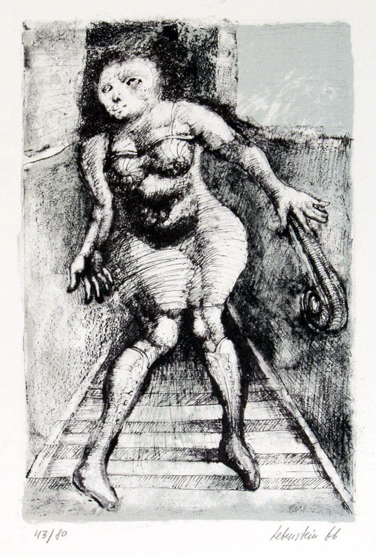 Jan Lebenstein (Brześć Litewski 1930 - Kraków 1999) w latach 1948-1954 studiował malarstwo w ASP w Warszawie pod kierunkiem prof. Eugeniusza Eibischa i Artura Nachta-Samborskiego. W 1955 wziął udział w wystawie w warszawskim Arsenale. Zaprzyjaźniony w czasie studiów z Mironem Białoszewskim, swą pierwszą wystawę indywidualną pokazał w 1956 w Teatrze na Tarczyńskiej. W 1959 zdobył Grand Prix de la Ville de Paris na I Biennale Młodych w Paryżu i w tym roku przeniósł się na stałe do Paryża. Po seriach "figur kreślonych" (na papierze milimetrowym) i "figur hieratycznych" z lat 1955-1958 maluje cykl "figur osiowych" (1958-1962), które wystawia w Paryżu i USA. Równolegle w 1960 zaczyna rysowane "karnety", rodzaj dziennika, który w przyszłości dostarczy motywów wykorzystanych w obrazach. W latach 1964-1965 maluje "Bestiarium", cykl fakturowych, archaizowanych stworów przypominających prehistoryczne wykopaliska. Bezpośrednio po nich wprowadza do swych obrazów postaci ludzkie i fantastyczne, odgrywające sceny ni to mitologiczne, ni to ze snu, często przesycone erotyką. W 1970 projektuje witraże dla Centre du Dialogue w Paryżu. W W 1971 otrzymuje obywatelstwo francuskie 1974 powstają gwasze inspirowane Folwarkiem zwierzęcym George'a Orwella. W latach 1976-1989 tworzy wyłącznie w technice gwaszu i pastelu, podejmując tematykę mitologiczną i zaczerpniętą z Biblii: cykle ilustracji do Księgi Hioba (wyd. 1979) i do Apokalipsy (wyd. 1986) w nowych przekładach Czesława Miłosza. W 1989 powraca do malarstwa olejnego (cykl "Pergamon"). Artysta otrzymał m. in. nagrodę Fundacji im. Alfreda Jurzykowskiego w 1976, Nagrodę Muzeum Archidiecezji Warszawskiej w 1985, Nagrodę im. Jana Cybisa w 1987.