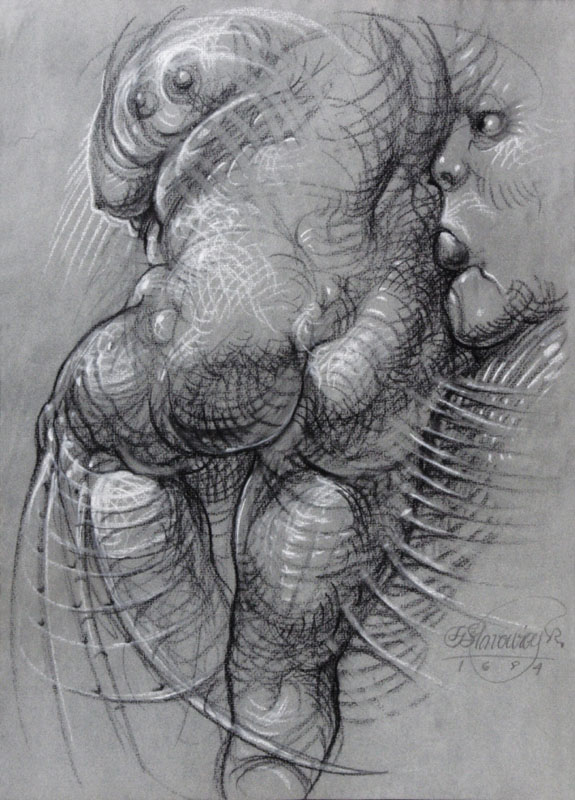 Franciszek Starowieyski (Bratkówka koło Krosna 8 VII 1930 – Warszawa 23 II 2009), używający pseudonimu Jan Byk, studiował w latach 1949-1952 w ASP w Krakowie pod kierunkiem prof. Wojciecha Weissa , po czym kontynuował studia w ASP w Warszawie, uzyskując w 1955 dyplom w pracowni prof. Michała Byliny. W latach 60. i 70. największe uznanie zdobył jako twórca plakatu, w którym szybko dorównał koryfeuszom tej dziedziny sztuki w Polsce. Uprawiał plakat typu autorskiego, o rozpoznawalnym stylu bazującym na zamaszystym i zarazem kaligraficznym rysunku, przede wszystkim zaś zaskakujących, surrealistycznych skojarzeniach. Od 1964 był kierownikiem artystycznym modnego miesięcznika „Ty i Ja”. Z czasem przewagę w jego dokonaniach zdobył „czysty” rysunek, od 1980 często prezentowany w formie dynamicznych seansów tzw. Teatru Rysowania, z udziałem modelek, publiczności i samego artysty, spełniającego się w nim w roli demiurga. Tworzył wiele kompozycji malarskich i rysunkowych emanujących surrealną atmosferę życia na skraju fizycznego rozpadu, będących współczesną wersją tematu vanitas. Zafascynowany kulturą baroku, artysta od 1970 antydatował wszystkie prace o 300 lat wstecz. Artysta był laureatem licznych nagród, które zdobywał m.in. na takich wystawach, jak Biennale Sztuki w Sao Paulo 1973, Międzynarodowa Wystawa Plakatu Filmowego, Cannes 1974, „Annual Key Award”, Los Angeles 1978. Wielokrotnie przebywał w Nowym Jorku na zaproszenie Fundacji Kościuszkowskiej. W 1980 był profesorem w Berliner Hochschule der Künste, w latach 90. wykładał w Europejskiej Akademii Sztuk w Warszawie.