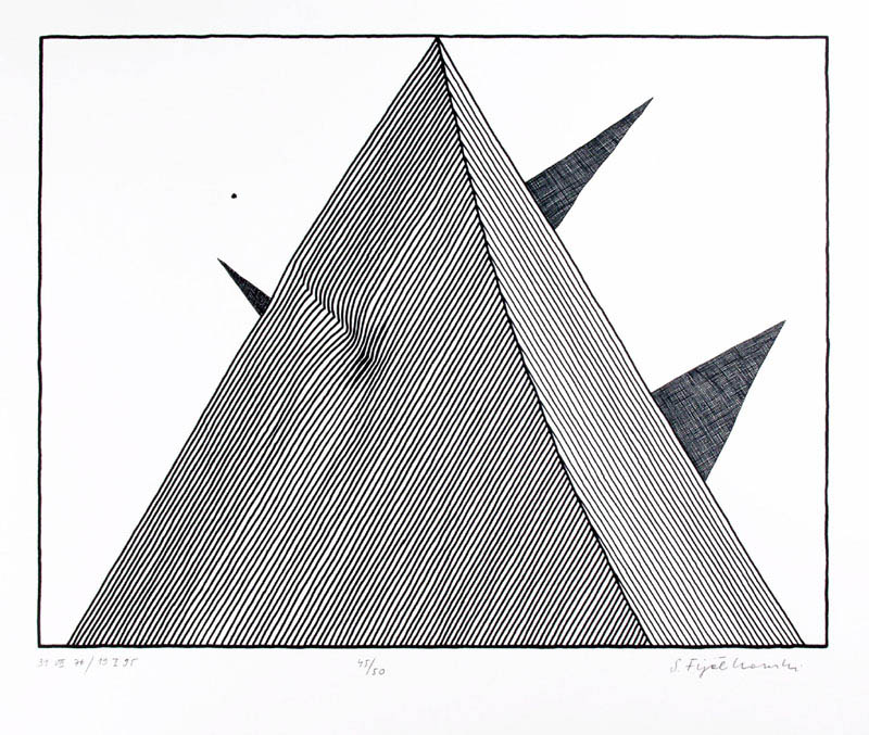 Stanisław Fijałkowski (Zdołbunow na Wołyniu 1922 - Łódź 2020) w latach 1944-1945 przebywał na robotach przymusowych w Królewcu. W latach 1946- 1951 studiował w Państwowej Wyższej Szkole Sztuk Plastycznych w Łodzi pod kierunkiem Władysława Strzemińskiego, Stefana Wegnera i Ludwika Tyrowicza, u którego uzyskał dyplom. W latach 1947-1993 był pedagogiem w macierzystej uczelni, od 1983 profesorem. Pełnił funkcje prorektora i dziekana Wydziału Grafiki. Wykładał też za granicą: w Mons (1978, 1982), Giessen (1989-1990), Marburgu (1990). Jest wiceprezydentem Międzynarodowego Stowarzyszenia Drzeworytników XYLON w Szwajcarii i przewodniczącym Polskiej Sekcji tej organizacji. Należy do zagranicznych Akademii nauk i sztuk w Salzburgu i Brukseli. Jest laureatem Nagrody Krytyki Artystycznej im. Cypriana Norwida 1971, Nagrody im. Jana Cybisa 1990 i wielu innych wyróżnień. Jako pierwszy w Polsce przetłumaczył teksty Wasyla Kandinskiego („Punkt i linia a płaszczyzna” i „O duchowości w sztuce”), oba wydane drukiem, oraz Kazimierza Malewicza „Świat bezprzedmiotowy”. Malarstwo Fijałkowskiego bazuje na skromnym zasobie abstrakcyjnych znaków i ograniczonej gamie barwnej. Kompozycje, w większości sugerujące ujęcia pejzażowe czy szerzej – przestrzenne, budowane są jakby pojedynczymi dotknięciami pędzla. Każdy szczegół nabiera ważności, śledzi się każdy niuans barwy czy faktury. Charakterystyczne kształty i motywy powtarzają się w różnych konfiguracjach w pracach artysty niczym wyrazy, z których układa za każdym razem inną opowieść. Obrazy noszą zazwyczaj poetyckie tytuły, często wpadające w tony groteskowe czy surealistyczne. Cechy te składają się na niezwykłe, intrygujące, autonomiczne zjawisko artystyczne. Malarstwu Fijałkowskiego od początku lat 60. towarzyszy czarno-biała grafika, głównie linoryt i drzeworyt, sporadycznie litografia.