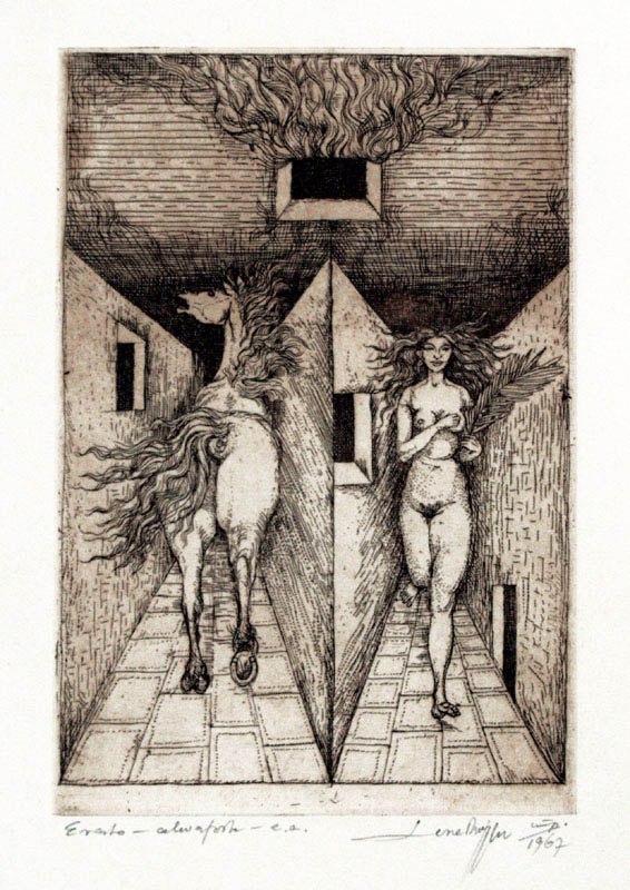 Leszek Rózga (Zgierz 1924 - Łódź 2015) - artysta grafik. W latach 1940-1945 przebywał na robotach w Niemczech, gdzie po zakończeniu wojny pracował w teatrze amatorskim i uczył się prywatnie malarstwa (1945-1947). Studiował w Państwowej Wyższej Szkole Sztuk Plastycznych w Łodzi (1948-1951) i na Wydziale Grafiki Propagandowej w Katowicach - filii ASP w Krakowie, gdzie obronił dyplom w 1954. W latach 1967-1994 był wykładowcą (od 1979 profesorem) w uczelni łódzkiej, gdzie stworzył szkołę metaforycznej, ekspresyjnej sztuki graficznej. Brał udział w licznych wystawach w kraju i za granicą, zdobywając często nagrody. Był również laureatem wielu nagród państwowych, resortowych, regionalnych itp., jak: Nagrody Ministra Kultury i Sztuki I st. 1981, 1986, 1994, Nagroda Woj. Łódzkiego 1972, Nagroda Miasta Łodzi 1985. Działał w ZPAP, był m. in. członkiem Rady Artystycznej Zarządu Głównego 1974-1976. Początkowo zajmował się głównie malarstwem, rysunkiem i monotypią, tworząc nastrojowe widoki miejskie. Od 1960 skupił się na grafice warsztatowej (głównie w technikach metalowych). W latach 70. wprowadzał do swych kompozycji werystycznie odwzorowane rośliny i owoce, inskrypcje, cytaty ze sztuki klasycznej.