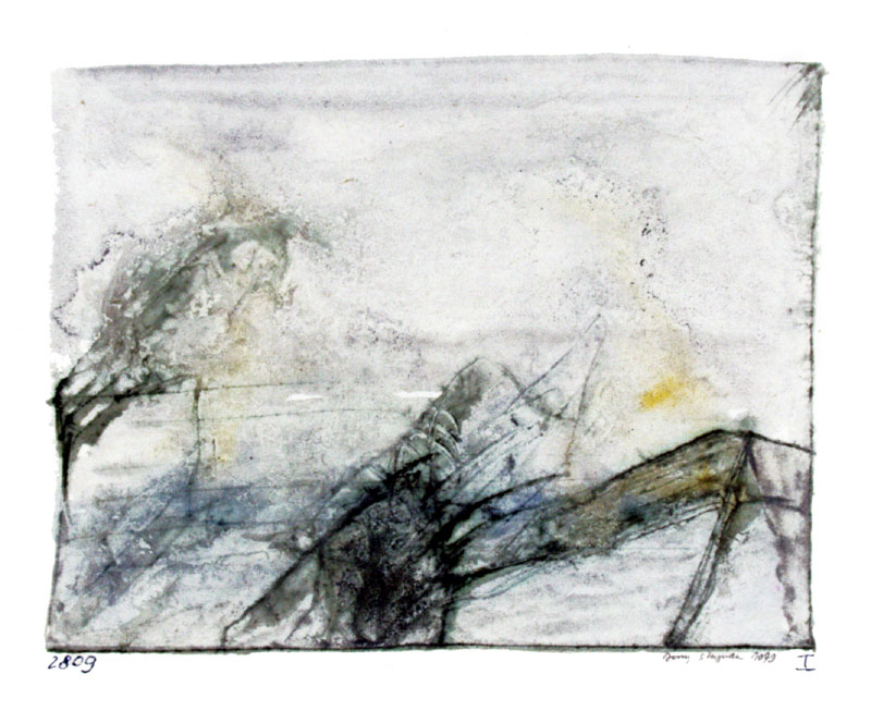 Jerzy Stajuda (Falenica 1936 - Warszawa 1992) - studiował na Wydziale Architektury Politechniki Warszawskiej w latach 1952-1959. Jako malarz zadebiutował wystawą indywidualną w 1957. W tym samym czasie zaczął też pisać recenzje i felietony o sztuce do prasy, co na wiele lat stało się jego głównym zajęciem. Najdłużej współpracował ze „Współczesnością” (1959-1967), publikował też w „Przeglądzie Artystycznym”, „Polsce”, „Miesięczniku Literackim”, „Ty i Ja”, „Więzi” i in. Osiągnął pozycję czołowego krytyka lat 50. i 60., jego opinie i wybory ważą do dziś na obrazie sztuki polskiej tych lat (miał m. in. znaczący udział w wylansowaniu talentu Władysława Hasiora). Do 1968, tj. do czasu zerwania ze stałym uprawianiem krytyki (na co miały wpływ zmiany w redakcji „Współczesności” i sytuacja w kraju po Marcu 1968), Stajuda malował niejako w ukryciu. Uważał, że krytyk nie powinien wystawiać. Niemniej od końca lat 50. powstawały obrazy, akwarele i rysunki, w których artysta stopniowo dochodził do własnego wyrazu w sztuce. Tworzył kompozycje abstrakcyjne, w typie lirycznego informelu, o wycyzelowanej formie malarskiej i stonowanym kolorycie, akcentowanym pojawiającymi się w kompozycjach białymi prześwitami do gruntu czy podłoża papierowego - w czym analitycy jego malarstwa dopatrują się symbolu pustki. Apogeum jego dojrzałej twórczości przypada na koniec lat 70. i następną dekadę. Powstały wtedy dziesiątki obrazów (w większości rozproszonych po kolekcjach publicznych i prywatnych w kraju i za granicą) oraz tysiące kompozycji na papierach różnych formatów (te z kolei stanowią w większości własność rodziny, złożoną w depozycie w Muzeum ASP w Warszawie). Pisanie i uprawianie malarstwa nie wyczerpuje listy zainteresowań Stajudy. Pod koniec życia wykładał rysunek na Wydziale Rzeźby ASP w Warszawie (1990-1992). Był też muzykiem-amatorem o szerokich koneksjach w środowisku muzycznym, nadto przez wiele lat jego dom był miejscem towarzyskich spotkań twórców różnych dziedzin sztuki i nauki.