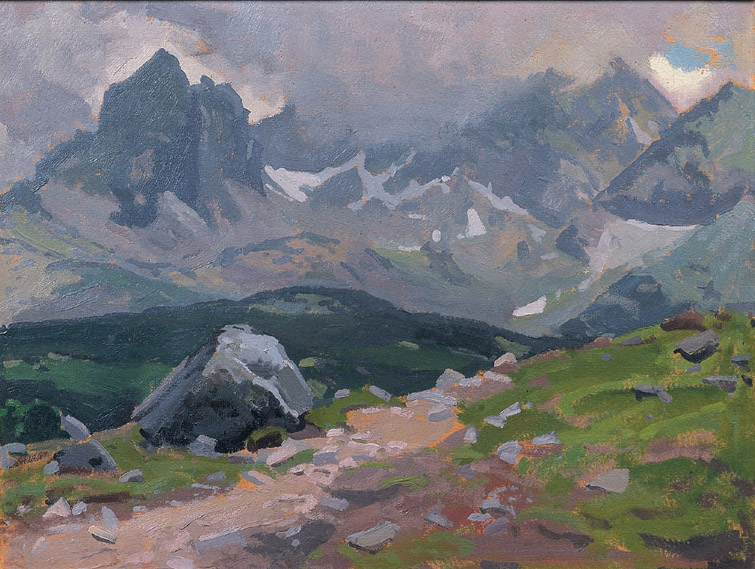 Stanisław Gałek – malarz i rzeźbiarz, znany przede wszystkim jako pejzażysta tatrzański – początkowo uczył się w Szkole Zawodowej Przemysłu Drzewnego w Zakopanem, gdzie później – w latach 1896-1899 – sam nauczał rysunków jako asystent Edgara Kovátsa. W latach 1899-1900 studiował w krakowskiej Akademii Sztuk Pięknych pod kierunkiem Jana Stanisławskiego i Jacka Malczewskiego. Następnie, po 1900 kształcił się jeszcze w Königliche Kunstgewerbeschule w Monachium i w École Nationale des Beaux-Arts w Paryżu u Jeana Léona Gérôme’a. Po powrocie do kraju zamieszkał w Zakopanem. W roku 1910 podróżował do Włoch (pejzaże z Capri) i na Krym. W latach 1912-1916 nauczał w Szkole Zawodowej Kołomyi, a w 1916-1931 w Szkole Przemysłu Drzewnego w Zakopanem. Należał do towarzystwa „Sztuka Podhalańska”, od 1925 był członkiem TZSP w Warszawie. Od roku 1900 pokazywał swoje prace na licznych wystawach, m.in. wielokrotnie w TPSP w Krakowie i we Lwowie, w TZSP w Warszawie (stale od 1907), w Poznaniu (udział w Powszechnej Wystawie krajowej 1929 r.). Wystawiał też za granicą w Wiedniu, Berlinie (1910) i Budapeszcie (1930). Po II wojnie światowej uczestniczył w wystawach ZPAP w Zakopanem; w roku 1960 miał tam wystawę jubileuszową. Gałek, uważany za jednego z najlepszych malarzy Tatr, cieszył się dużą popularnością. Jego szczególnie ulubionym rejonem było otoczenie Morskiego Oka. Malował także widoki nadmorskie, sceny rodzajowe i portrety. Projektował kilimy dla zakopiańskiego stowarzyszenia „Kilim”.