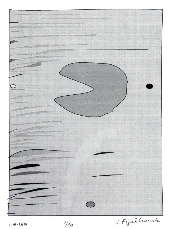Stanisław Fijałkowski (Zdołbunow na Wołyniu 1922 - Łódź 2020) w latach 1944-1945 przebywał na robotach przymusowych w Królewcu. W latach 1946- 1951 studiował w Państwowej Wyższej Szkole Sztuk Plastycznych w Łodzi pod kierunkiem Władysława Strzemińskiego, Stefana Wegnera i Ludwika Tyrowicza, u którego uzyskał dyplom. W latach 1947-1993 był pedagogiem w macierzystej uczelni, od 1983 profesorem. Pełnił funkcje prorektora i dziekana Wydziału Grafiki. Wykładał też za granicą: w Mons (1978, 1982), Giessen (1989-1990), Marburgu (1990). Jest wiceprezydentem Międzynarodowego Stowarzyszenia Drzeworytników XYLON w Szwajcarii i przewodniczącym Polskiej Sekcji tej organizacji. Należy do zagranicznych Akademii nauk i sztuk w Salzburgu i Brukseli. Jest laureatem Nagrody Krytyki Artystycznej im. Cypriana Norwida 1971, Nagrody im. Jana Cybisa 1990 i wielu innych wyróżnień. Jako pierwszy w Polsce przetłumaczył teksty Wasyla Kandinskiego („Punkt i linia a płaszczyzna” i „O duchowości w sztuce”), oba wydane drukiem, oraz Kazimierza Malewicza „Świat bezprzedmiotowy”. Malarstwo Fijałkowskiego bazuje na skromnym zasobie abstrakcyjnych znaków i ograniczonej gamie barwnej. Kompozycje, w większości sugerujące ujęcia pejzażowe czy szerzej – przestrzenne, budowane są jakby pojedynczymi dotknięciami pędzla. Każdy szczegół nabiera ważności, śledzi się każdy niuans barwy czy faktury. Charakterystyczne kształty i motywy powtarzają się w różnych konfiguracjach w pracach artysty niczym wyrazy, z których układa za każdym razem inną opowieść. Obrazy noszą zazwyczaj poetyckie tytuły, często wpadające w tony groteskowe czy surealistyczne. Cechy te składają się na niezwykłe, intrygujące, autonomiczne zjawisko artystyczne. Malarstwu Fijałkowskiego od początku lat 60. towarzyszy czarno-biała grafika, głównie linoryt i drzeworyt, sporadycznie litografia.