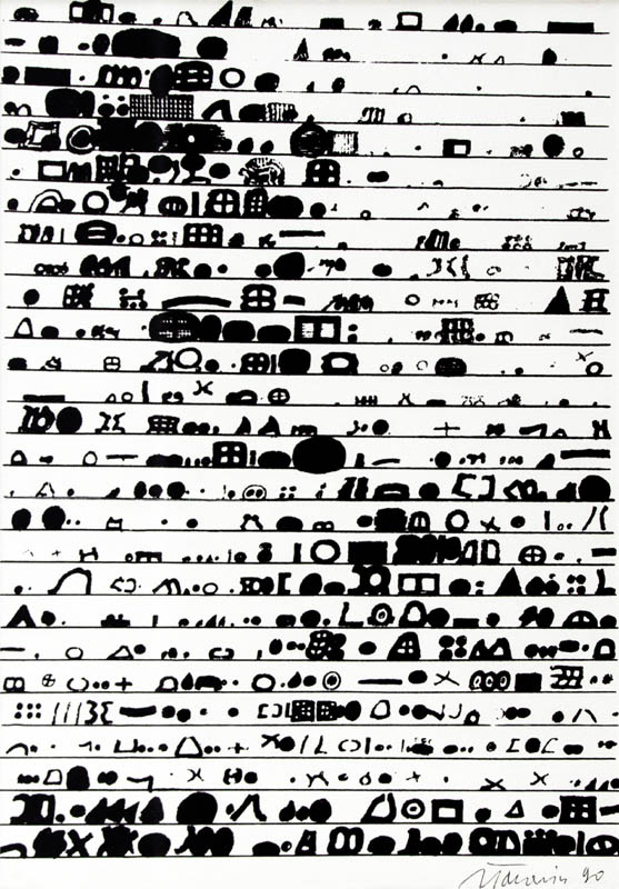 Jan Tarasin (Kalisz 11 IX 1926 - Warszawa 8 VIII 2009) studiował malarstwo w ASP w Krakowie pod kierunkiem prof. Zbigniewa Pronaszki (1946-1951). Jeszcze jako student zadebiutował na I Wystawie Sztuki Nowoczesnej w Krakowie w 1948/49. W połowie lat 50. stworzył cykle litografii: „Nowa Huta i jej mieszkańcy“, 1954, „Dom“, 1955). W pierwszym przeciwstawił się oficjalnemu optymizmowi, w drugim, operując symboliką martwej natury, zawarł treści egzystencjalne i odnoszące do niedawnego dramatu wojny. Po 1956 zaczął malować obrazy niefiguratywne. Układy wyodrębnionych elementów (określanych jako „przedmioty“) umieszczane były przez artystę na płaszczyźnie (cykl „Wnętrze“, 1957) ), lub w aluzyjnej przestrzeni (cykle „Uczta“, 1957, „Brzeg“, 1962-1964, „Przedmioty policzone“, od 1968, „Antykwariat“, 1968). Zasada ta utrzymuje się w jego malarstwie w następnych latach, różnice między okresami twórczości dotyczą sposobu opracowania „przedmiotów“ i ich usytuowania w przestrzeni obrazu lub wobec tła. Od lat 70. „przedmioty“ zmieniają się w graficzne, zwykle czarne znaki na jasnych tłach (cykl „Kolekcja“, od 1971). Tła z kolei bywają iluzyjnie przestrzenne, zróżnicowane walorowo, miękkie. W latach 90. artysta wrócił do kolorystycznego, bardziej malarskiego rozwiązywania zarówno znaków, jak i teł, często ciemnych lub przenikających się z „przedmiotami“ (cykl „Wylęgarnia przedmiotów“, 1992). Tarasin od 1962 jest członkiem „Grupy Krakowskiej“. W 1963-67 uczył na Wydziale Architektury Wnętrz krakowskiej ASP. W 1967 przeniósł się do Warszawy, w 1974 podjął pracę pedagogiczną na Wydziale Malarstwa ASP w Warszawie. W 1987-90 był rektorem tej uczelni. W 1976 otrzymał Nagrodę Krytyki Artystycznej im. Cypriana Kamila Norwida, w 1984 Nagrodę im. Jana Cybisa.; Nagroda na MB Sztuki w San Marino 1965. Równolegle z malarstwem zajmował się rysunkiem i grafiką - do lat 60. litografią, od 1974 serigrafią. W 1974-1981 wydał 8 autorskich „Zeszytów“ z serigrafiami i własnymi tekstami. W 1995 w Galerii Zachęta odbyła się wystawa artysty, której towarzyszył monograficzny katalog.