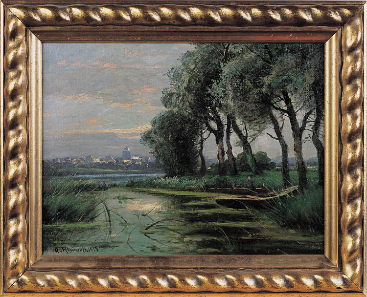 Adolf Rheinert - pejzażysta, uczeń Eugena Kampfa w Düsseldorfier; malował głównie pejzaże nadmorskie, często holenderskie wioski z postaciami rybaków lub kobiet oczekujących na brzegu powrotu mężczyzn z połowu.