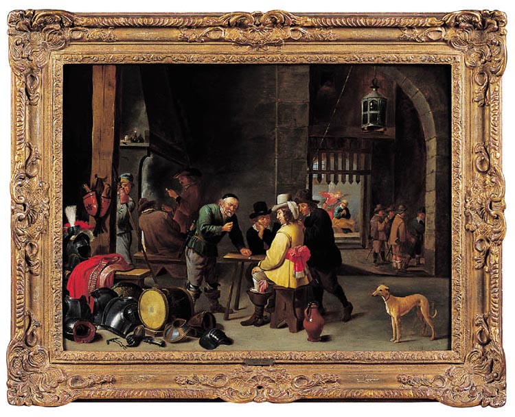 Omawiany obraz nawiązuje do wielu wersji kompozycji Davida Teniersa (1610-1690) z lat czterdziestych XVII wieku. Dwie spośród nich, namalowane na blasze miedzianej: w Wallace Collection