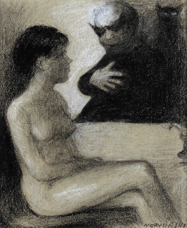 Grzegorz Moryciński (Augustów 1936 - Warszawa 2015) - studiował na Wydziale Malarstwa ASP w Warszawie pod kierunkiem profesorów Stanisława Szczepańskiego i Artura Nachta-Samborskiego, uzyskując dyplom u tego drugiego w 1961. Zajmował się malarstwem, rysunkiem, grafiką warsztatową (akwaforta, linoryt) i użytkową (plakat, grafika książkowa). Tworzył figuralne kompozycje, których forma wiele zawdzięcza tradycji kolorystycznej, w jakiej artysta został wykształcony. Pierwszą wystawę indywidualną miał w 1960; odtąd wielokrotnie wystawiał w kraju i za granicą. W okresie stanu wojennego uczestniczył w ruchu kultury niezależnej, wiele wystawiając w kościołach oraz na pokazach prywatnych (wystawa w pracowni Marii Anto, wspólnie z Jarosławem Modzelewskim, Warszawa 1983, wystawa zbiorowa w pracowni Urszuli Brzozowskiej-Strałeckiej, Warszawa 1984). Był też związany z kręgiem parafii Miłosierdzia Bożego na Żytniej. Zdobył liczne nagrody, m. in. wyróżnienia w Konkursie im. Jana Spychalskiego w 1973 i 1977, Nagrodę Stołecznej Rady Narodowej w 1968, nagrodę na wystawie „Bielska Jesień” w 1979, Nagrodę Komitetu Kultury Niezależnej „Solidarność” w 1988. W 1993 był stypendystą Fundacji Pollock-Krasner. Jego prace znajdują się w czołowych kolekcjach muzealnych w kraju oraz w wielu prywatnych w Polsce i za granicą.
