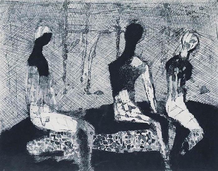 Halina Chrostowska (Warszawa 1929- Warszawa 1990) - pobierała pierwsze nauki pod okiem ojca, Stanisława Ostoja-Chrostowskiego, wybitnego grafika okresu międzywojennego i pierwszego rektora warszawskiej ASP po wojnie. Studiowała malarstwo i grafikę w latach 1946-1950 w tej uczelni. W 1950 rozpoczęła pracę pedagogiczną na Wydziale Grafiki, którą kontynuowała do 1989. Od 1962 prowadziła własną pracownię grafiki warsztatowej, w której wykształciła wielu wybitnych artystów. Równolegle działała w Związku Polskich Artystów Plastyków. Debiutowała w pierwszej połowie lat 50. cyklami akwafort, m. in. „W walce”, „Powstanie Kościuszkowskie”, „Z PGR-u”, nagradzanych na Ogólnopolskich Wystawach Plastyki (1952-1954). W 1955 zdobyła II nagrodę i srebrny medal na Międzynarodowym konkursie i wystawie towarzyszącym V Światowemu Festiwalowi Młodzieży i Studentów w Warszawie. Mimo dominacji doktryny socrealizmu, artystka potrafiła wypracować formułę realizmu dalekiego od polityki, refleksyjnego i wiernego nieupiększonym realiom tych lat. Od około 1956 w jej twórczości górę wzięło zainteresowanie eksperymentami formalnymi i technicznymi. Początkowo tworzyła grafiki czarno-białe, skupiając się na efektach fakturowych (cykle „Astralny” (1957), „Komedianci”, 1961-1963). Łączyła niekiedy matryce metalowe z linorytniczymi i drzeworytniczymi. W 1968 wprowadziła do swych prac kolor, tworząc serie „Portretów” i różnobarwnych „Figur”. Grafiki Chrostowskiej łączyły związki z równoległymi nurtami malarstwa informel, w latach 70. z pop-artem. Od końca lat 50. datują się największe sukcesy artystki na forum krajowym i międzynarodowym. Uczestniczyła m. in. w I Biennale Młodych, Paryż 1959, II Międzynarodowym Biennale Grafiki, Tokio 1960 (gdzie uzyskała nagrodę Muzeum Ohara), VI Biennale Sztuki, Săo Paulo 1961, II Międzynarodowe Biennale Grafiki, Florencja 1970 (złoty medal). Kryzys zdrowotny (nadwerężenie nadgarstków) w 1973 zmusił ją do przejściowego zaniechania forsownej pracy przy grafice. Powstał wtedy rysunkowy cykl „Ręce”, w którym artystka odbijała swe dłonie pokryte farbami. Od 1975 wróciła do grafiki, tworząc kolejne kompozycje z zarzuconych cyklów. Od 1977 wykonywała unikatowe odbitki łączące grafikę z malarstwem i collage'em. W 1986 zapadła na chorobę nowotworową. Od 1988 wprowadziła do swego warsztatu sitodruk i kontynuowała eksperymenty malarskie.