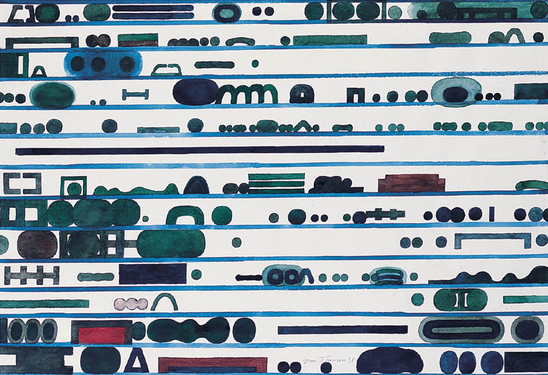Jan Tarasin (Kalisz 11 IX 1926 - Warszawa 8 VIII 2009) studiował malarstwo w ASP w Krakowie pod kierunkiem prof. Zbigniewa Pronaszki (1946-1951). Jeszcze jako student zadebiutował na I Wystawie Sztuki Nowoczesnej w Krakowie w 1948/49. W połowie lat 50. stworzył cykle litografii: „Nowa Huta i jej mieszkańcy“, 1954, „Dom“, 1955). W pierwszym przeciwstawił się oficjalnemu optymizmowi, w drugim, operując symboliką martwej natury, zawarł treści egzystencjalne i odnoszące do niedawnego dramatu wojny. Po 1956 zaczął malować obrazy niefiguratywne. Układy wyodrębnionych elementów (określanych jako „przedmioty“) umieszczane były przez artystę na płaszczyźnie (cykl „Wnętrze“, 1957) ), lub w aluzyjnej przestrzeni (cykle „Uczta“, 1957, „Brzeg“, 1962-1964, „Przedmioty policzone“, od 1968, „Antykwariat“, 1968). Zasada ta utrzymuje się w jego malarstwie w następnych latach, różnice między okresami twórczości dotyczą sposobu opracowania „przedmiotów“ i ich usytuowania w przestrzeni obrazu lub wobec tła. Od lat 70. „przedmioty“ zmieniają się w graficzne, zwykle czarne znaki na jasnych tłach (cykl „Kolekcja“, od 1971). Tła z kolei bywają iluzyjnie przestrzenne, zróżnicowane walorowo, miękkie. W latach 90. artysta wrócił do kolorystycznego, bardziej malarskiego rozwiązywania zarówno znaków, jak i teł, często ciemnych lub przenikających się z „przedmiotami“ (cykl „Wylęgarnia przedmiotów“, 1992). Tarasin od 1962 jest członkiem „Grupy Krakowskiej“. W 1963-67 uczył na Wydziale Architektury Wnętrz krakowskiej ASP. W 1967 przeniósł się do Warszawy, w 1974 podjął pracę pedagogiczną na Wydziale Malarstwa ASP w Warszawie. W 1987-90 był rektorem tej uczelni. W 1976 otrzymał Nagrodę Krytyki Artystycznej im. Cypriana Kamila Norwida, w 1984 Nagrodę im. Jana Cybisa.; Nagroda na MB Sztuki w San Marino 1965. Równolegle z malarstwem zajmował się rysunkiem i grafiką - do lat 60. litografią, od 1974 serigrafią. W 1974-1981 wydał 8 autorskich „Zeszytów“ z serigrafiami i własnymi tekstami. W 1995 w Galerii Zachęta odbyła się wystawa artysty, której towarzyszył monograficzny katalog.